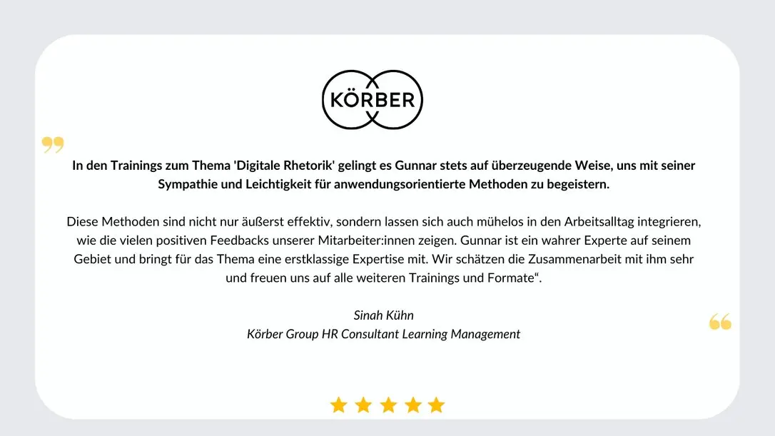 Präsentieren Sie klar. Überzeugen Sie souverän. Begeistern Sie nachhaltig – in Meetings, auf der Bühne und vor der Kamera.