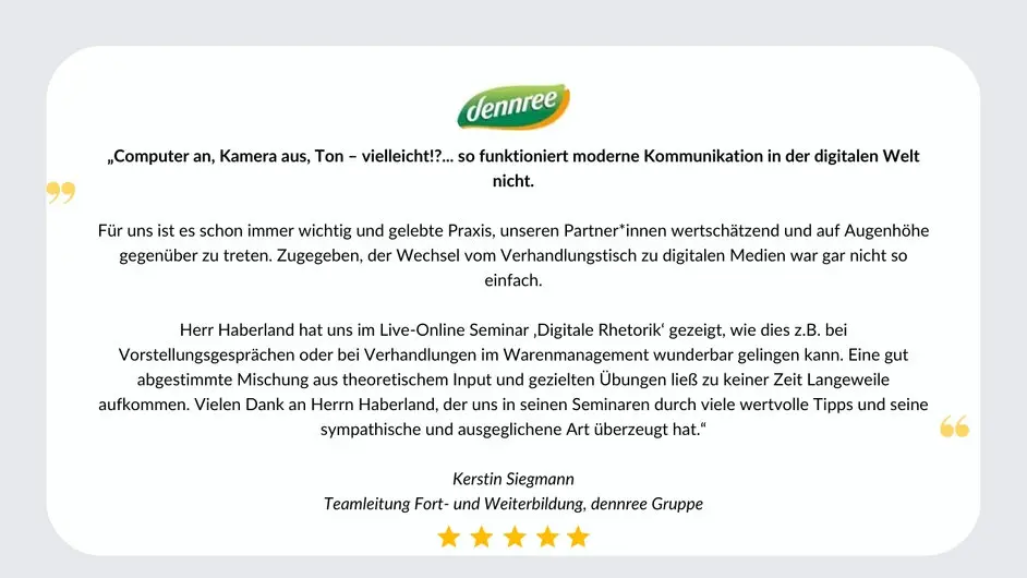 Professionelle Präsenz vor der Kamera, in Online-Meetings und im Dialog.